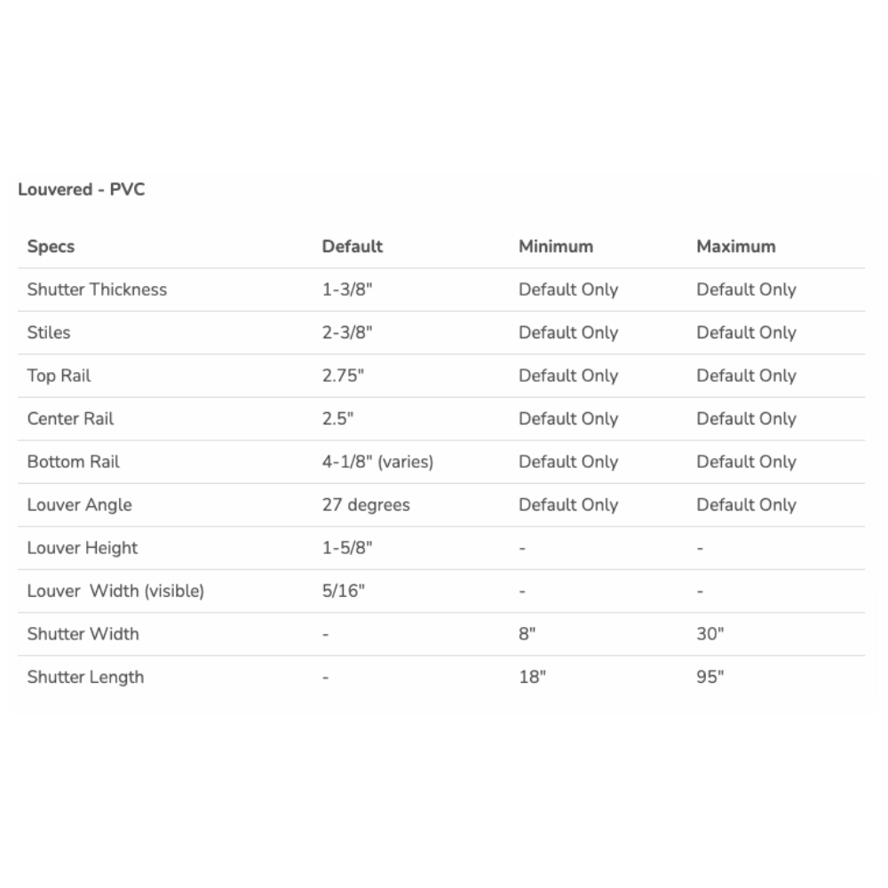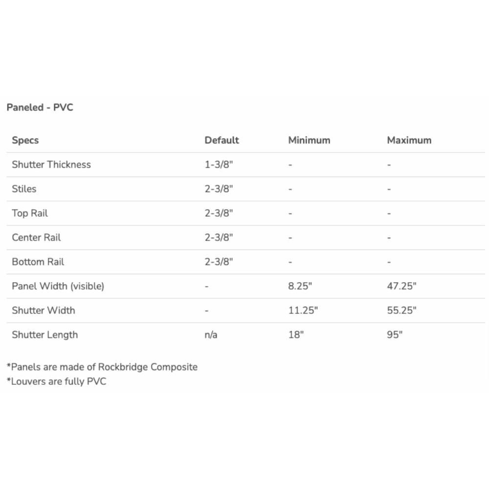 PVC paneled exterior shutters can be customized to nearly any specifications - similar to wood and composite.